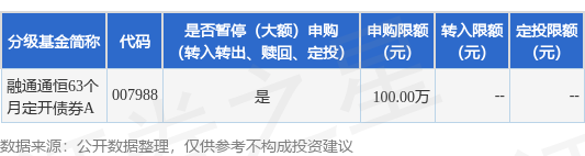 本站消息实盘配资最优秀的公司,11月6日融通基金管理有限公司发布《融通通恒63个月定期开放债券型证券投资基金暂停大额申购业务的公告》。公告中提示,为保证本基金的稳定运作,保护现有基金份额持有人利益,自2025年11月7日起融通通恒63个月定期开放债券型证券投资基金暂停大额申购业务,下属分级基金调整明细如下: