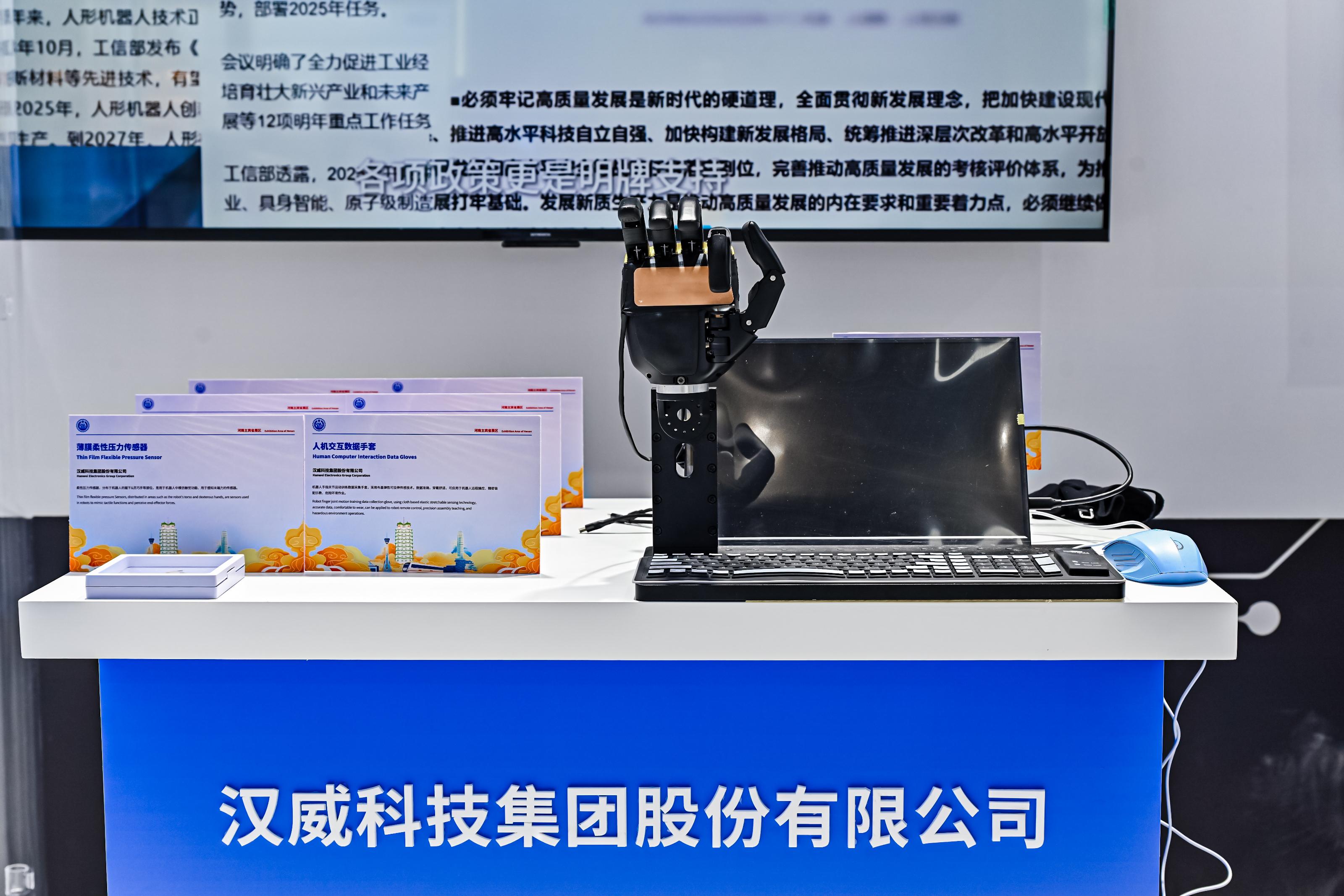 在汉威科技展区,一系列传感器核心产品吸引了许多观众驻足。薄膜柔性压力传感器、指尖多维力触觉传感器、接近—触觉电子皮肤、高密度压力阵列等展品,直观呈现了传感器的前沿应用。